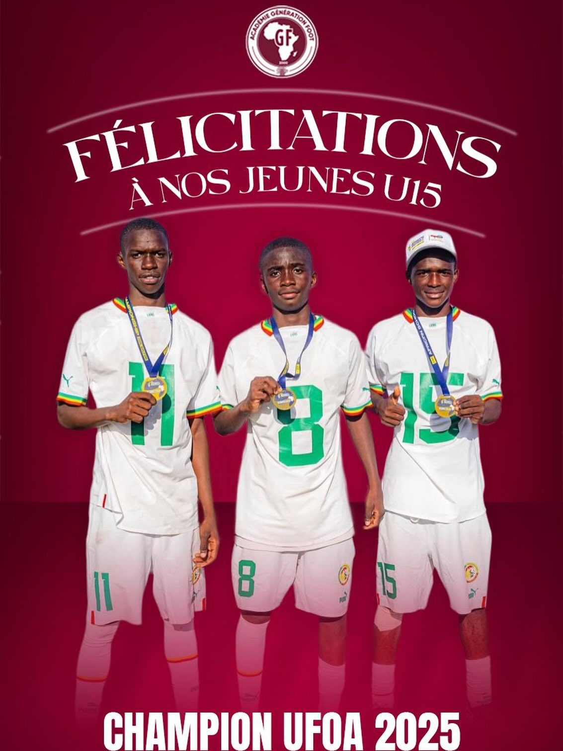Vainqueurs de la Coupe UFOA U15 de football scolaire en Gambie avec l’équipe nationale du Sénégal,